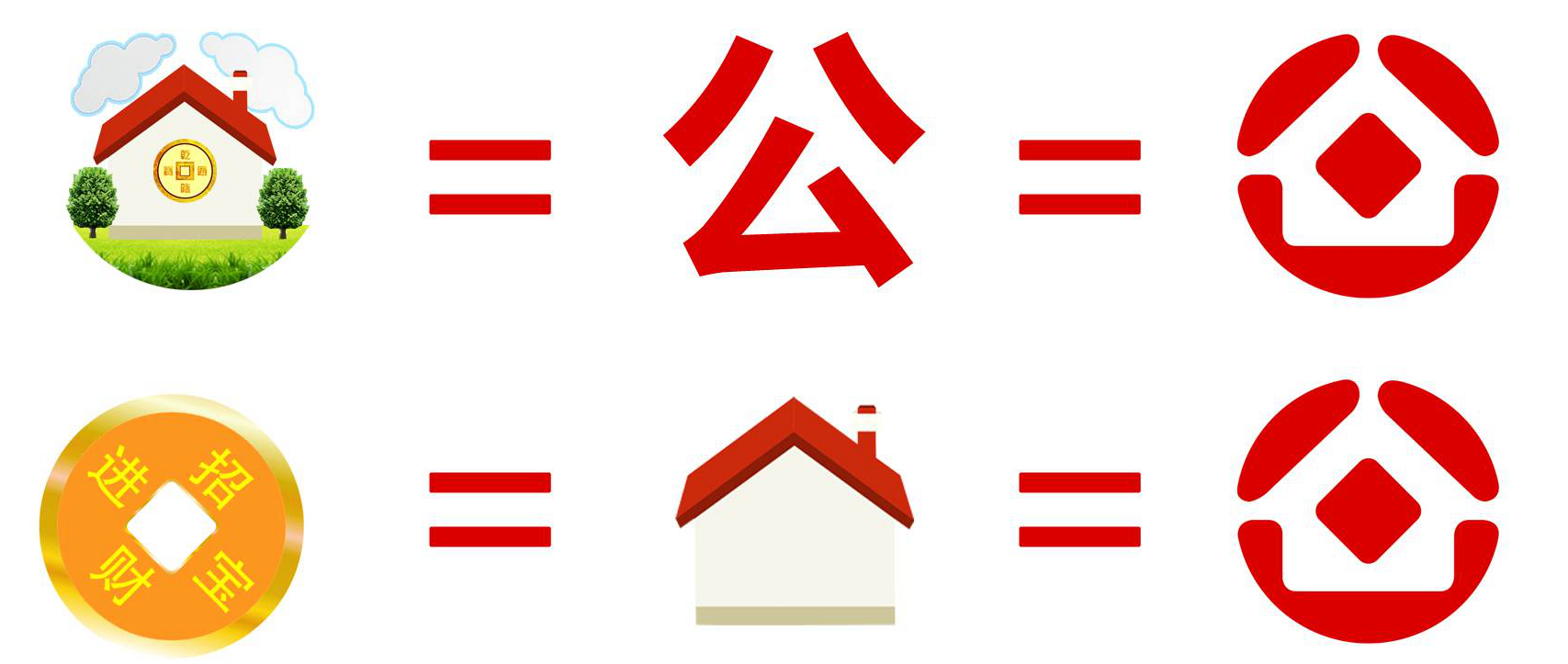 一個貫通內外的錢幣構成的房屋寓意住房公積金帶給住房者的財富。白云和地面巧妙結合形成了“公”字,也象征著住房公積金為職工住有所居提供了充分保障。