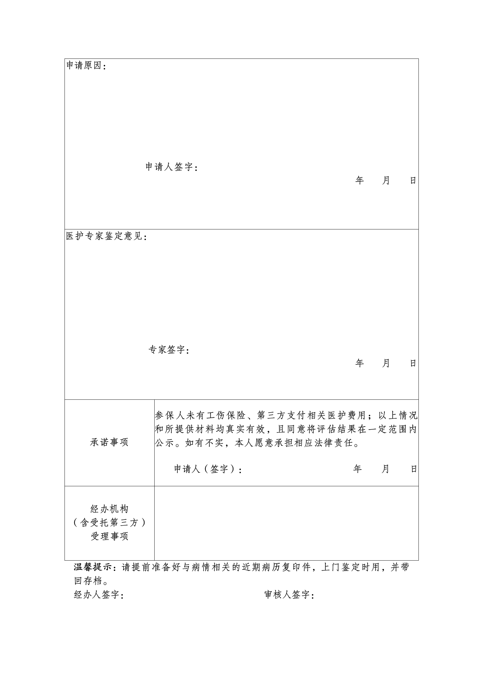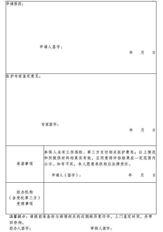 第二十三條 參保人員需辦理醫療專護、機構護理、居家護理的,由本人或其家屬(監護人)攜帶相關病歷材料、社會保障卡或身份證,向定點護理服務機構提出申請,并填寫《長期護理失能等級評估申請表》(附件1)和《長期護理失能等級自評表》(附件2)。