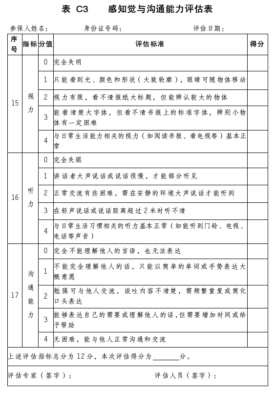 3. 表C 長期護理失能等級評估表