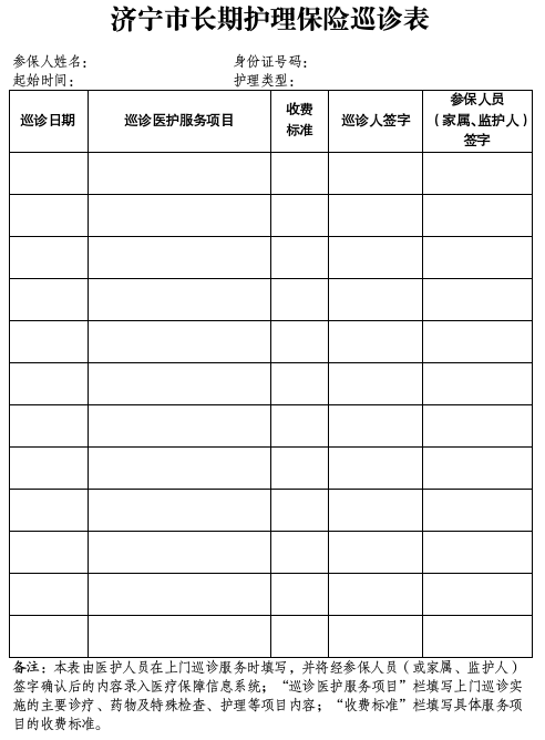 濟寧市長期護理保險巡診表