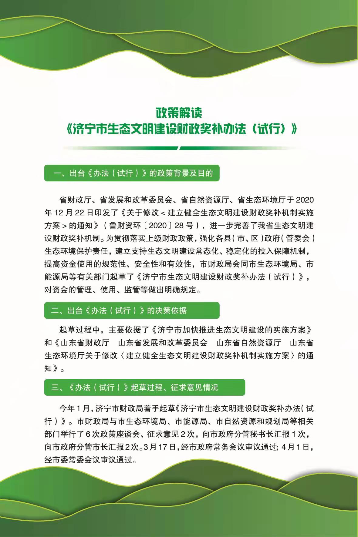 【生態建設】圖文解讀|《濟寧市生態文明建設財政獎補辦法(試行)》政策解讀