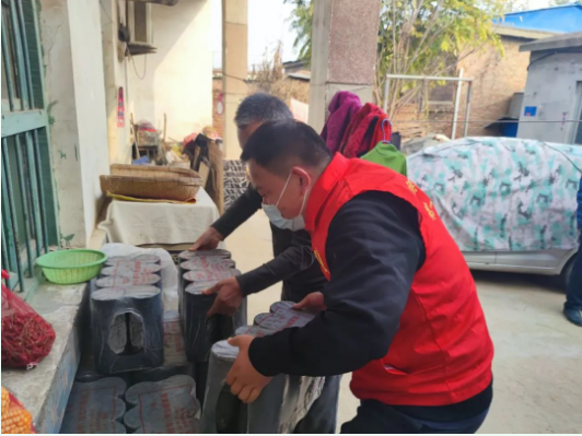 為保障群眾安全溫暖過冬,市派梁山縣壽張集鎮穆橋村第一書記仲虎子全面走訪摸排困難群眾過冬取暖物資需求,建立幫扶臺賬,主動為困難群眾維修取暖設備,聯系訂購、配送搬運清潔燃煤,提前送去了冬日的溫暖。圖為穆橋村第一書記仲虎子幫助村民搬運過冬燃煤。(供稿:梁山縣委組織部下派辦)