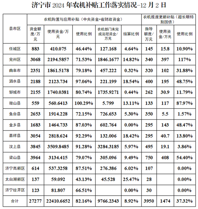 附表:濟寧市2024年農機補貼工作落實情況-12月2日
