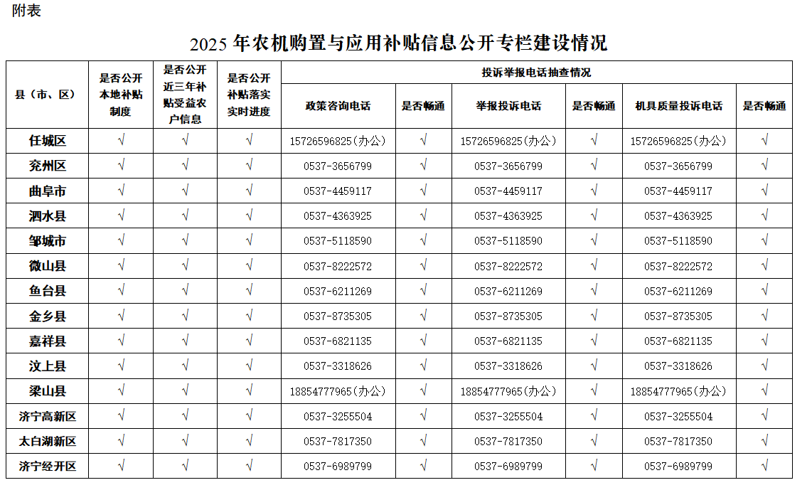 附表:2025年農機購置與應用補貼信息公開專欄建設情況