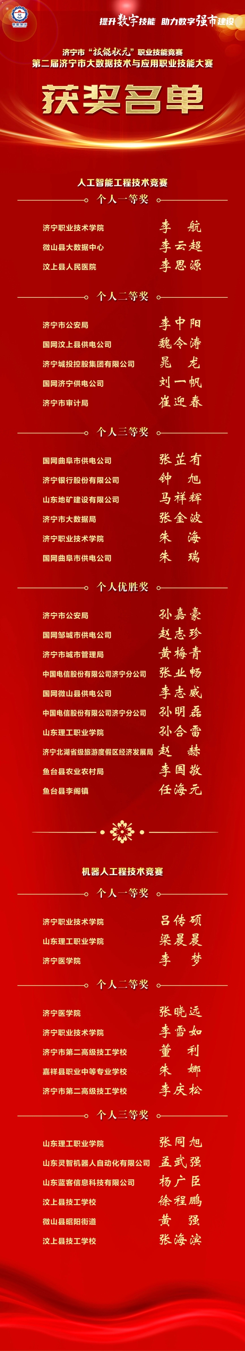第二屆濟(jì)寧市大數(shù)據(jù)技術(shù)與應(yīng)用職業(yè)技能大賽獲獎(jiǎng)名單公布!