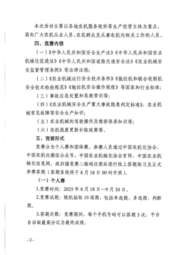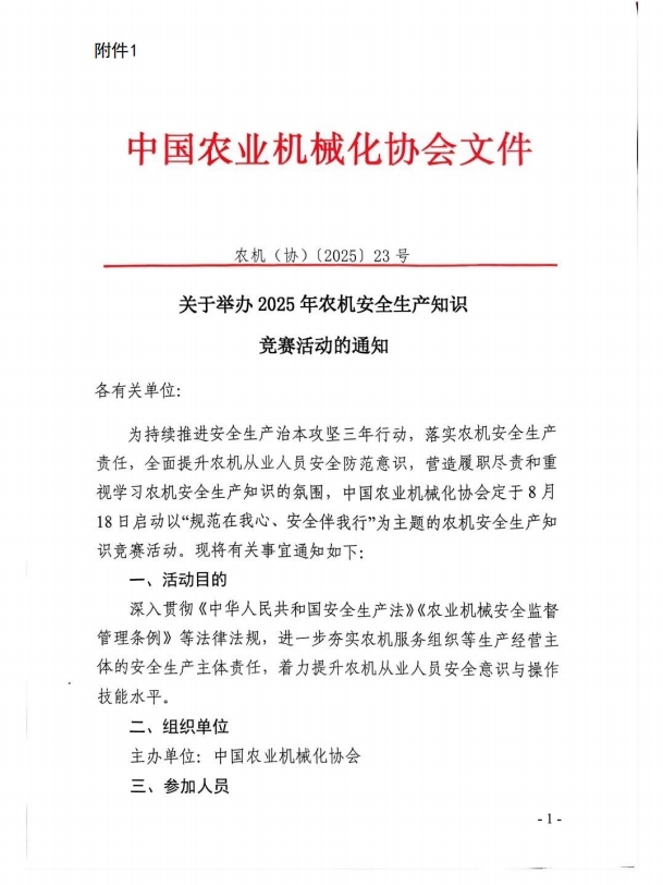 關于舉辦2025年農機安全生產知識競賽活動的通知