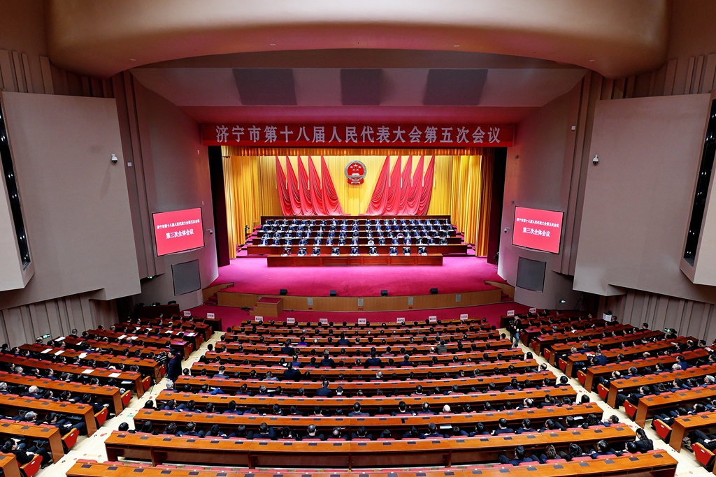 圖為市十八屆人大五次會議閉幕會場。■濟寧日報全媒體記者 劉項清 楊國慶 攝