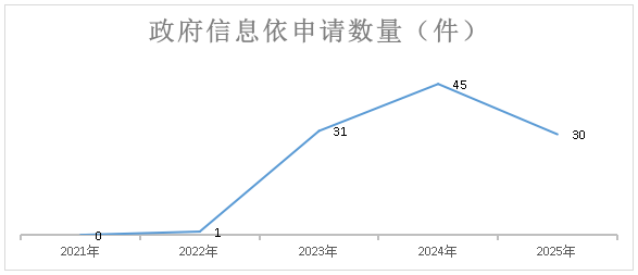 其中,解讀材料1件,通過政府網站互動交流平臺辦理市長信箱或網絡問政留言10次,積極回應公眾關注熱點問題。全年共召開主任辦公會2次、全體會議和專題會議3次;公示部門文件1件,參加市政府政策例行吹風會1次。 (二)依申請公開情況 2025年,市國防動員辦公室共收到的政府信息公開申請30件、辦理31件(其中2024年轉結辦理2件,轉結至2026年辦理1件),依申請公開數量比2024年減少15件。因政府信息公開工作行政復議總數1件、行政復議敗訴案件數1件;行政訴訟總數和行政訴訟敗訴案件數均為0件。