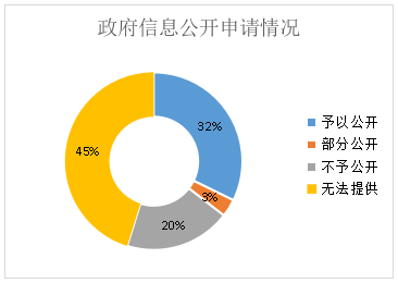 從辦理結果看,予以公開10件,占比32%;部分公開1件,占比3%;不予公開6件,占比20%;無法提供14件,占比45%。