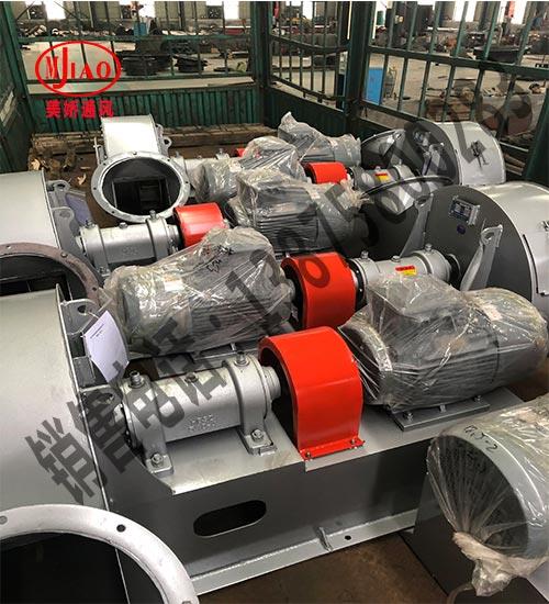 發往天津的火化爐尾氣風機、冷卻風機裝車發貨中